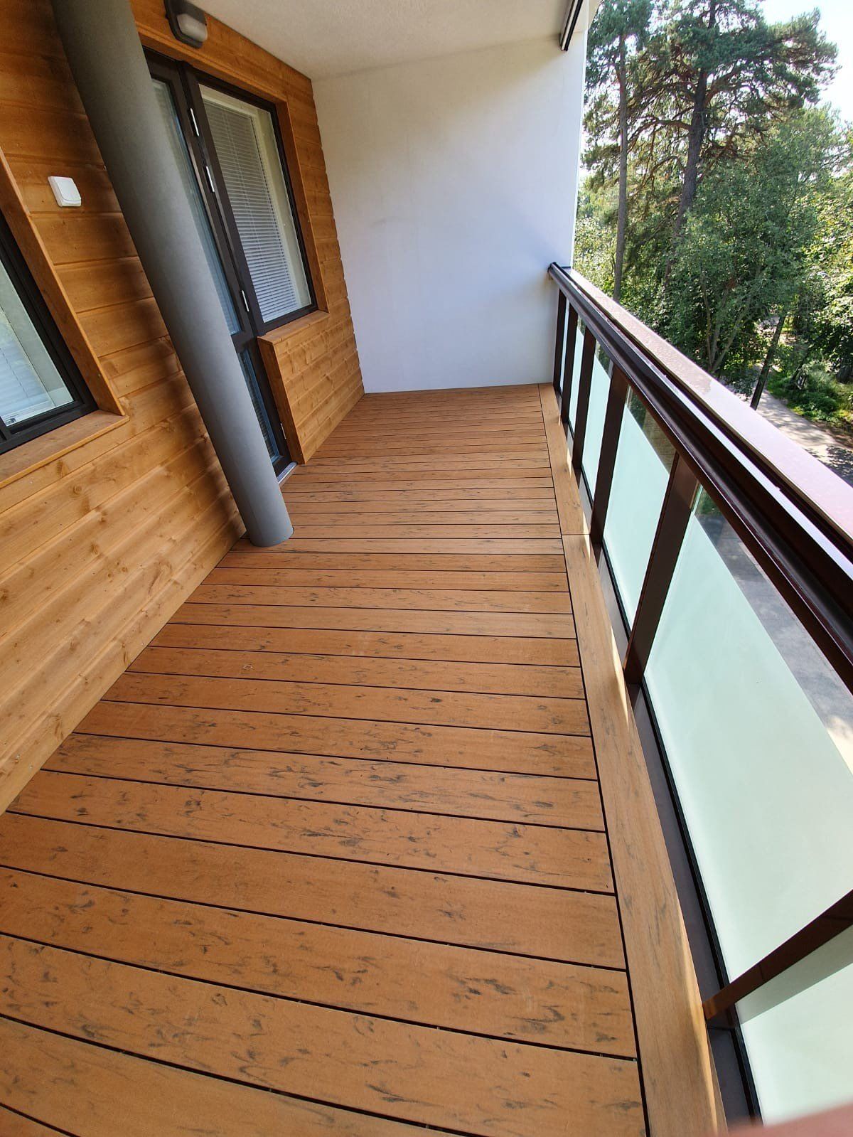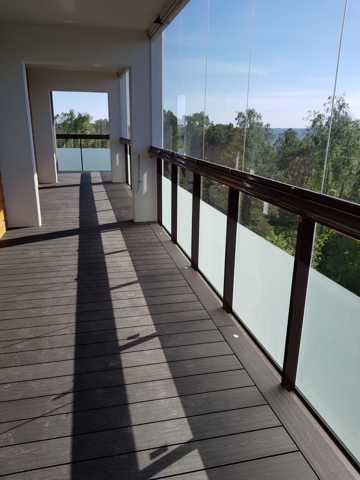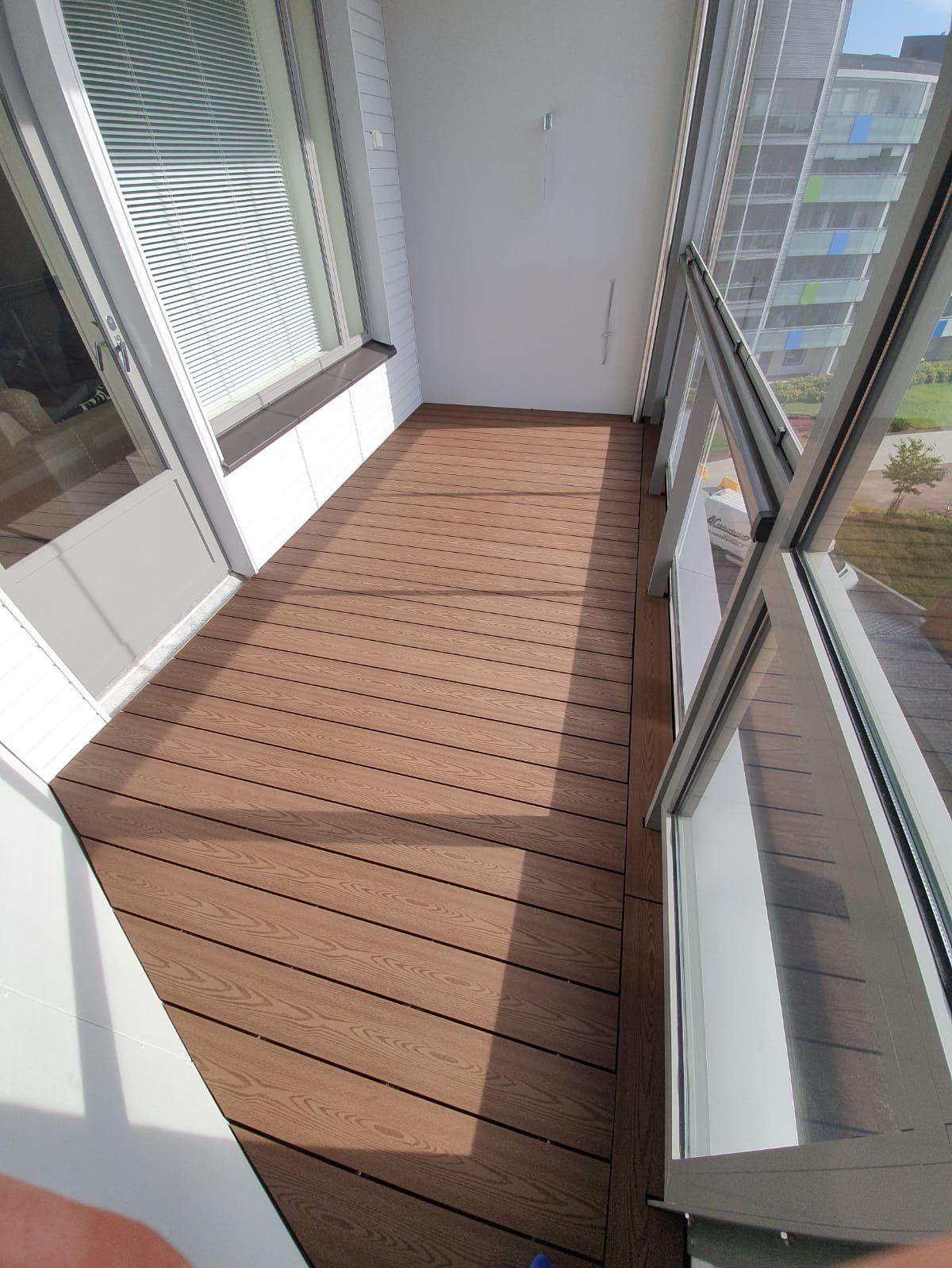 Parvekkeiden lisäksi myymme ja asennamme laudoituksia myös terasseille. Meidän käyntimme jälkeen terassia voi käyttää jokaisella säällä, jokaiseen vuodenaikaan.