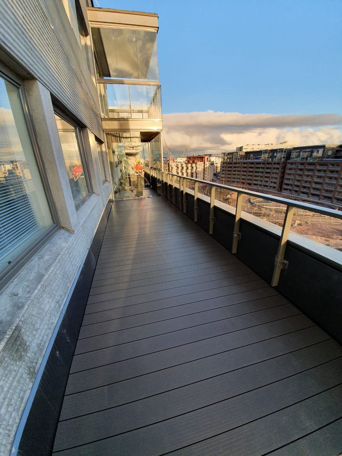 Yksityisten asiakkaiden lisäksi palvelemme parvekeasioissa myös muita yrityksiä. Teemme parvekkeita uudis- ja saneerauskohteisiin niin, että kaikkiin kohteen parvekkeisiin asennetaan sama laadukas parvekelaudoitus. Laudoituksen avulla parvekkeen taso nostetaan lattian tasolle, jolloin korkeaa kynnystä ei synny. Näin toteutuu esteettömyys parvekkeen käytössä.